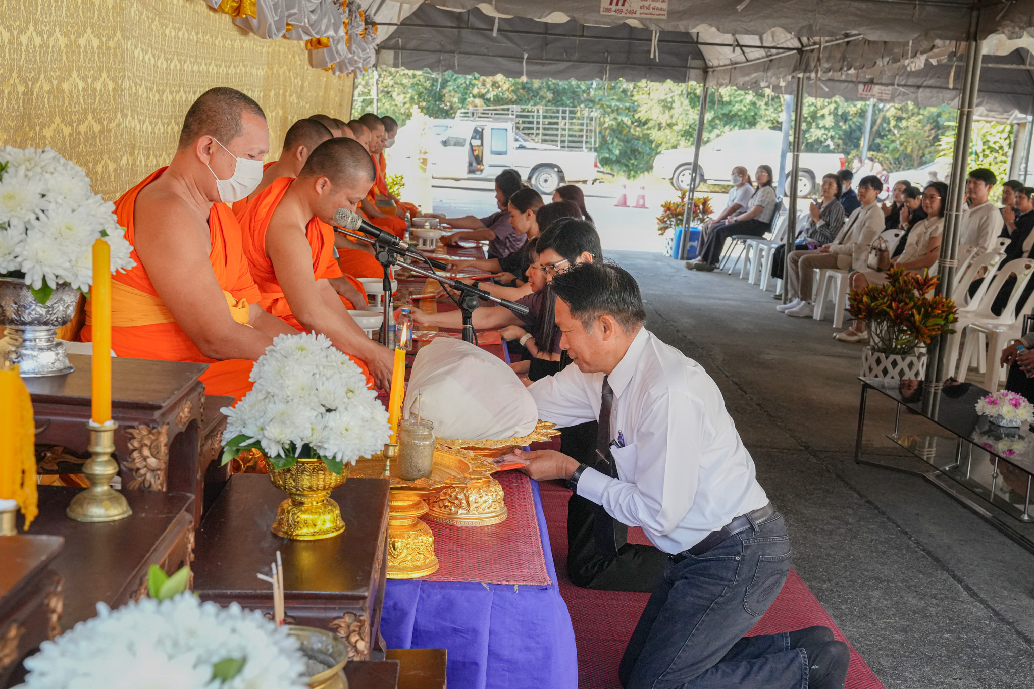 ภายในกิจกรรมได้รับความเมตตาจาก พระครูอุดลสราภิรัตชาญณัฏฐ์ เจ้าอาวาสวัดสระสี่เหลี่ยม แสดงพระธรรมเทศนา เพื่อเสริมสร้างจิตสำนึกด้านคุณธรรม จริยธรรม และความเมตตา ณ ลานหน้าอาคารสถานสัตว์ทดลองเพื่อการวิจัย มหาวิทยาลัยนเรศวร